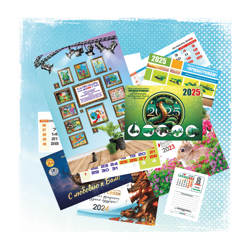 - Представительская и сувенирная продукция с индивидуальным фирменным дизайном (визитки, конверты, открытки, приглашения, бланки, блокноты, ежедневники, календари квартальные, настольные и карманные).