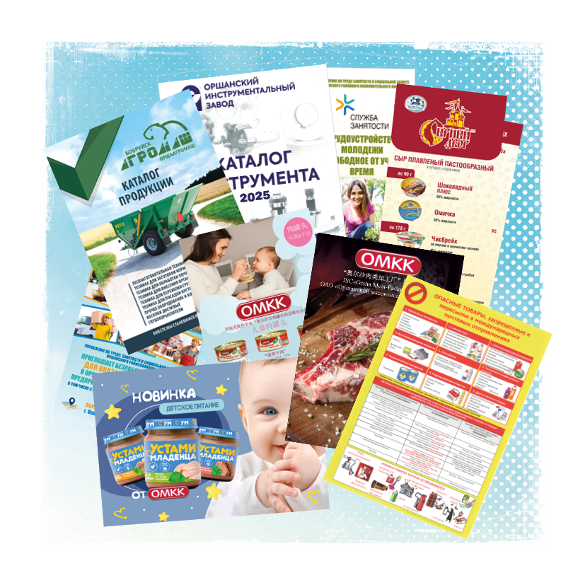 - Рекламная продукция (каталоги, букеты, проспекты, листовки).